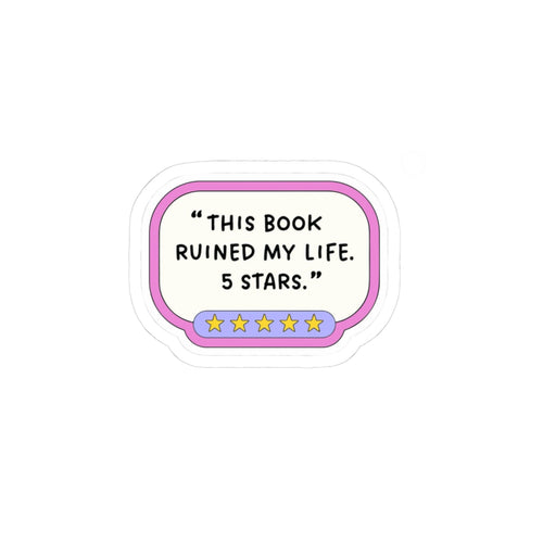 "This Book Ruined My Life. 5 Stars." Cute Pastel Review Decal Stickers